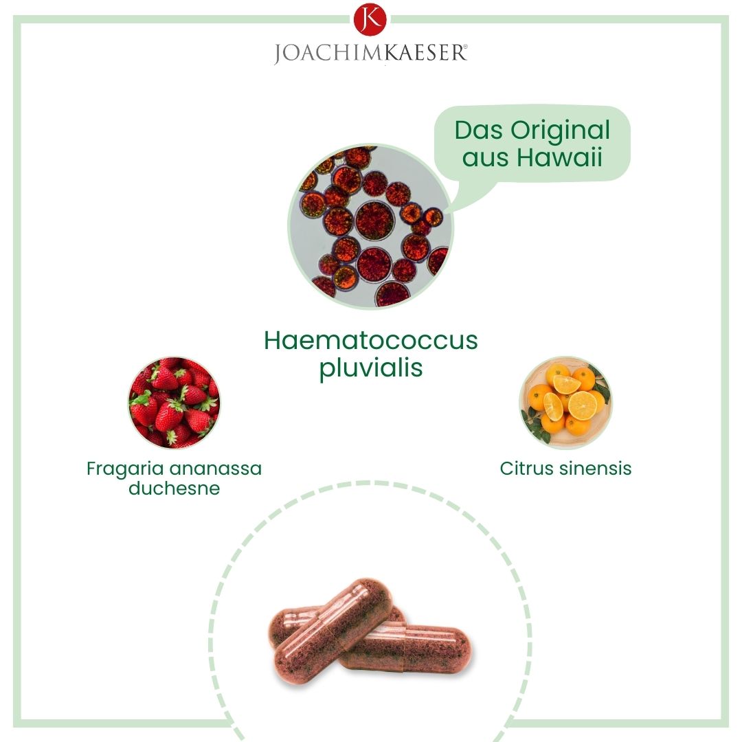 Joachim Kaeser Astaxanthin Kapseln sind ein hochwertiges Nahrungsergänzungsmittel, das die außergewöhnlichen Vorteile von Astaxanthin bietet. Astaxanthin ist ein starkes Antioxidans, das aus der Mikroalge Haematococcus pluvialis gewonnen wird und für seine vielseitigen Eigenschaften bekannt ist.